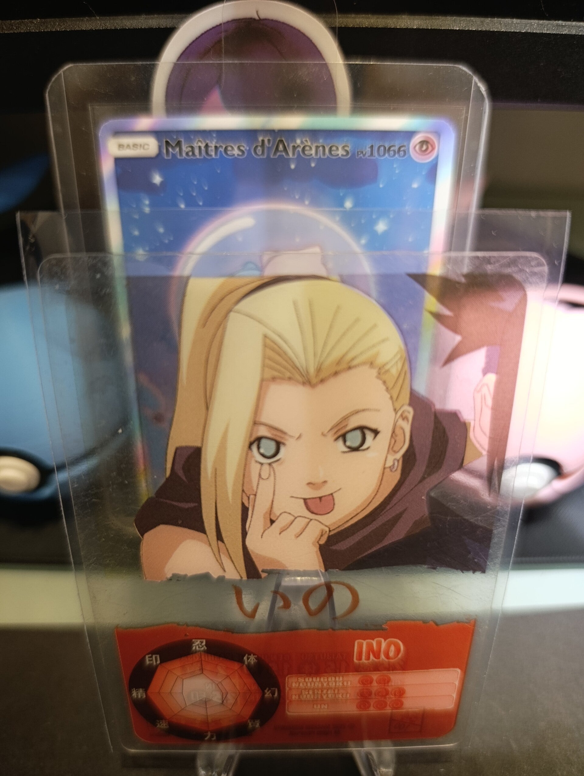 Cette carte représente Ino Yamanaka, membre du clan Yamanaka et kunoichi emblématique de Konoha, connue pour ses techniques psychiques et son rôle majeur dans l’équipe 10.